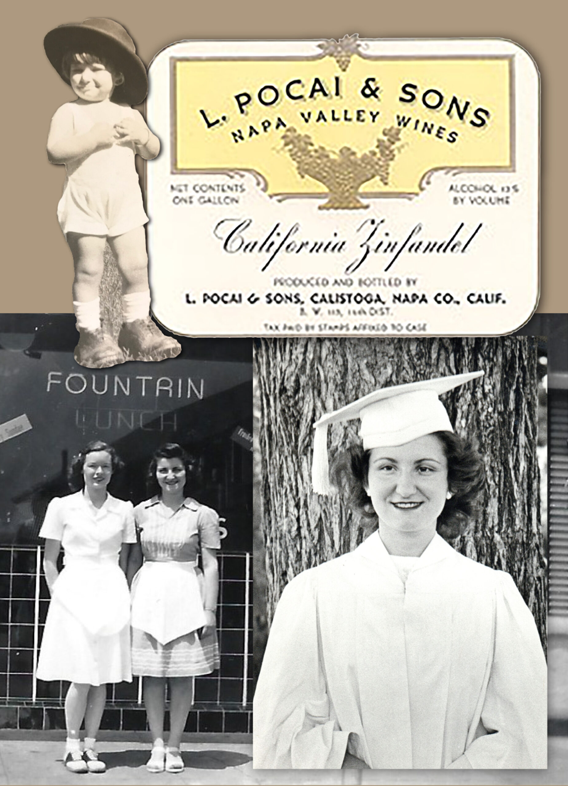 Frank Pocai met and married Anna (Angela) Cavagnaro the day after Christmas in 1923. Her parents also immigrated from Italy in 1863 and made their way to Calistoga after working in the mines. Frank and Anna were both very active in the Calistoga community, participating in organizations like the Native Sons and Native Daughters, as well as the Calistoga Fair Association, the Wine Institute, and the Napa County Farm Bureau. In addition to helping his father, Libero, with the vineyard and winery, Frank also worked as a carpenter. He and Anna had two daughters, Betty (1926) and Marie, who, like their parents, were also very active. Betty, fondly known as Pokey, was the student body secretary for her class every year and spent her free time working as a soda jerk at Lommel’s soda fountain. Libero passed away in 1935, leaving the winery operations to Maria, Frank, and Henry.